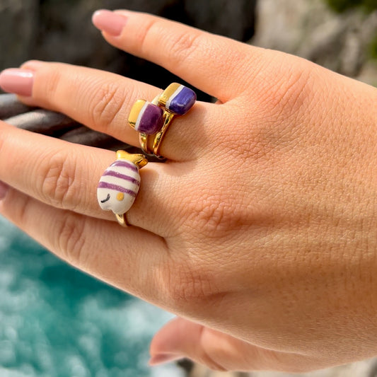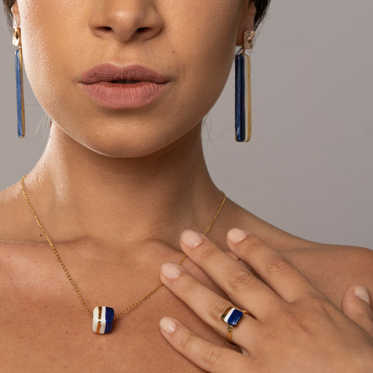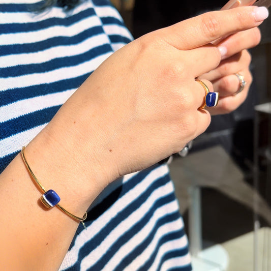 Classic blue and gold tile mini ring