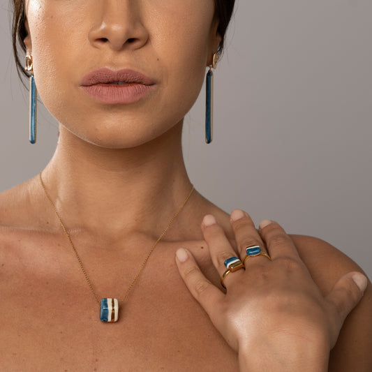 Mini aquamarine and gold tile ring
