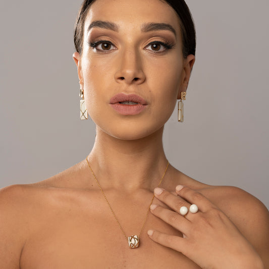 White sphere ring and gold tile